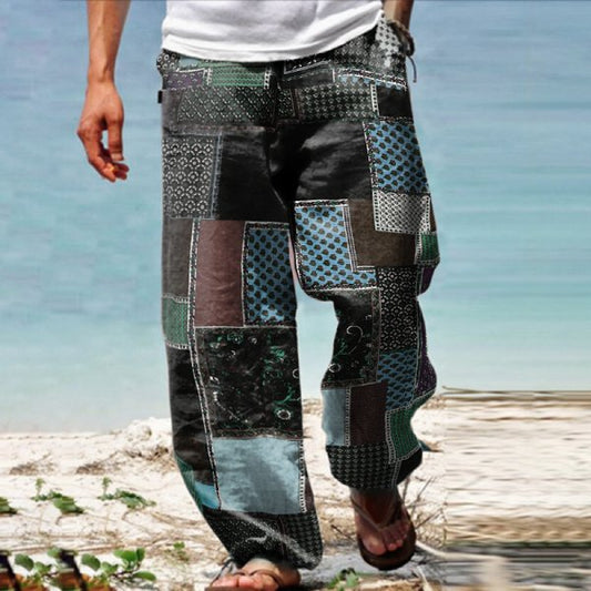Linen Western Ethnic Irregular Boho Print Double Pocket Stretch Loose Pants
