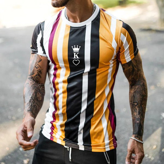 Fashion Peach Heart KING Stripe Print Casual Short Sleeve T-Shirt