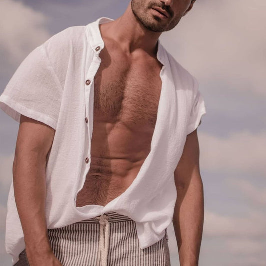 Casual Retro Simple Vacation Loose Cotton Linen Short Sleeve Shirt