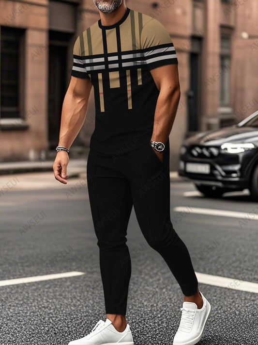 AanbiedingZipper Short Sleeve Long Pants Two-Piece Set