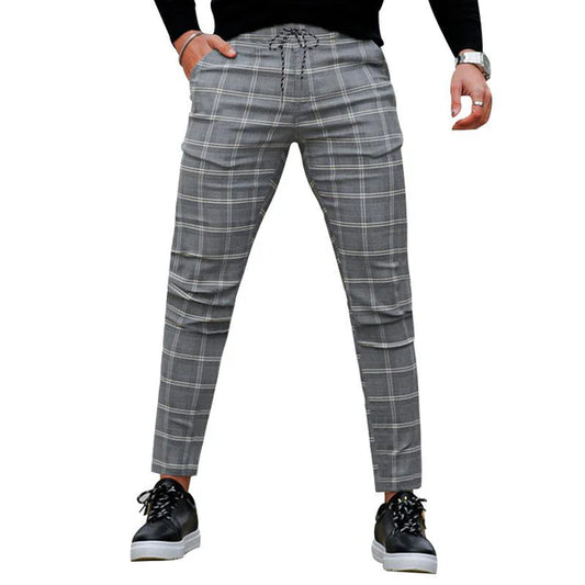 Retro Casual Simple Slim Fit Plaid Skinny Suit Pants