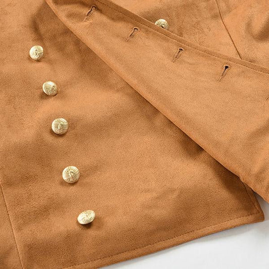 AanbiedingSTAND COLLAR SUEDE DOUBLE BREASTED VEST