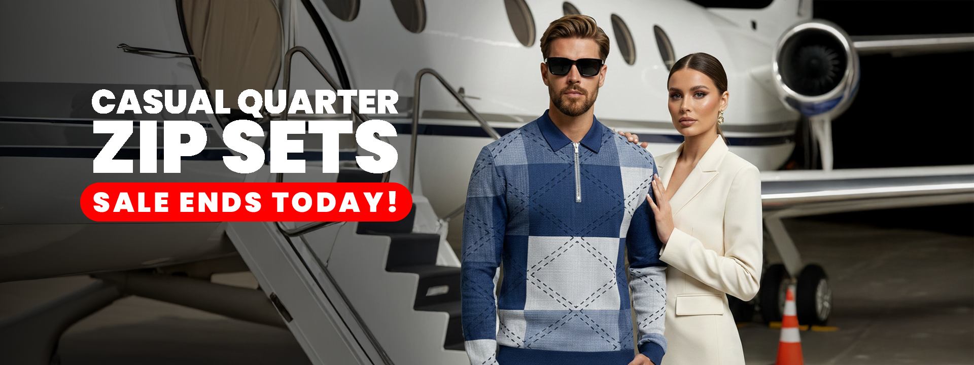 Long Sleeved Casual Quarter Zip Two-Piece Set