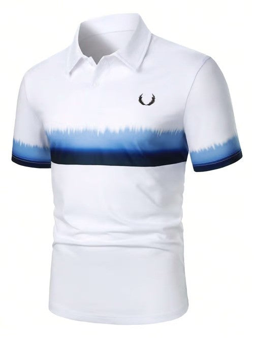 Vintage Gradient Print Lapel Casual POLO Shirt