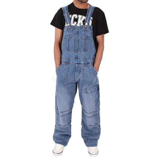 Loose Denim Multi-Pocket Cargo Overalls