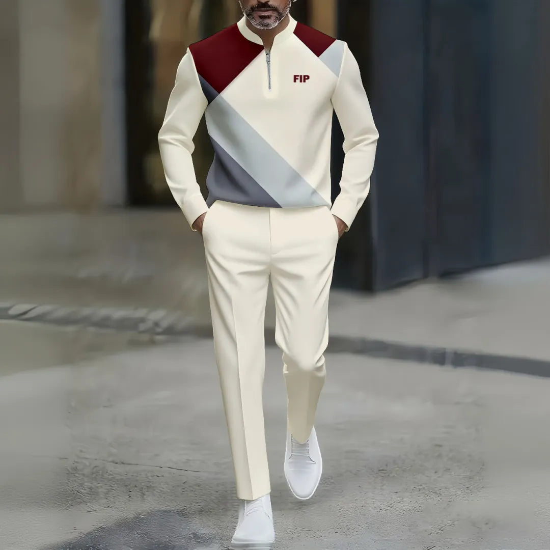 DUVAL. NORTH AMERICA Long Sleeve Zipper Two-piece Set perfectly epitomizes fashion and comfort in one. Comfortable enough for everyday wear in most seasons, the 100% polyester cotton material is lightweight and soft on the skin. Accented with contrasting color details, this set exudes playfulness with its geometrical print to add trendiness to your everyday wear. This zipper neck gives a modern touch while providing functionality. Due to its regular length and long sleeves, this ensures a classic and versatile fitting.