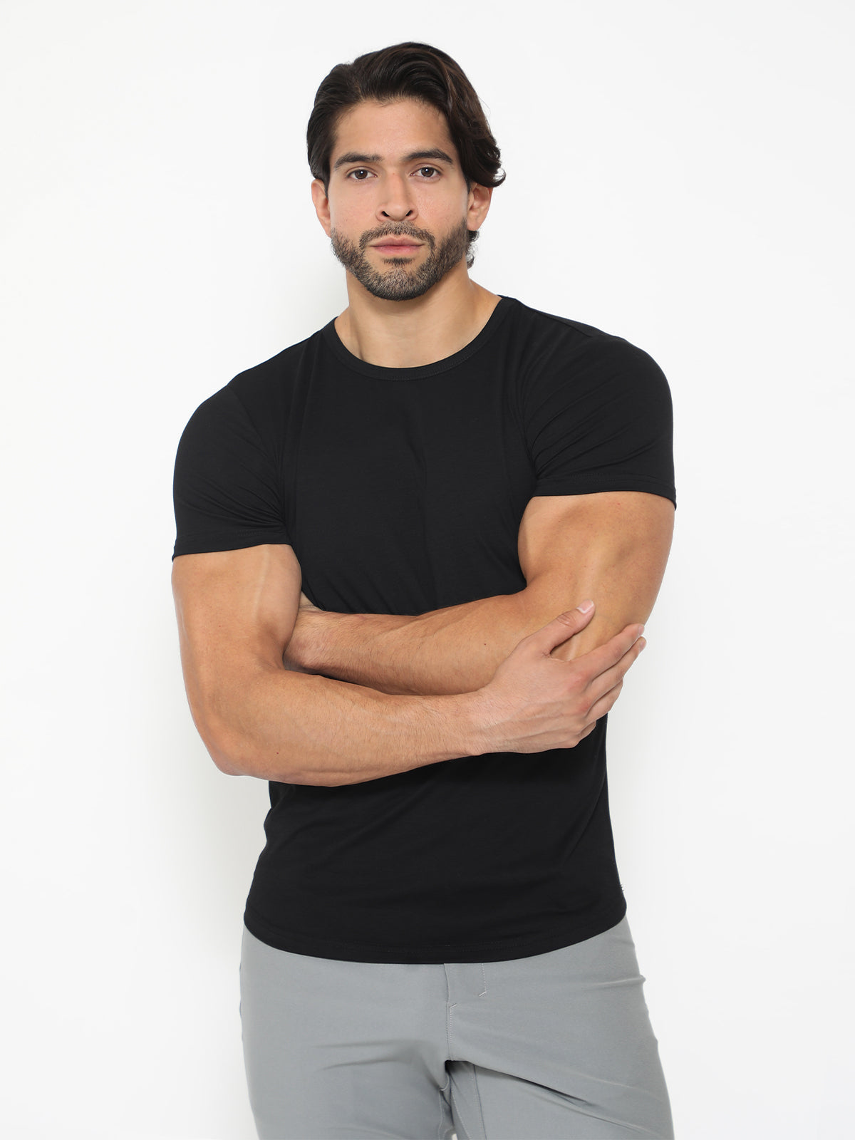 The Curve-Hem Tee from delivers on contemporary style and signature fit. Masterfully crafted from lightweight fabric engineered for all-day wear, its contouring details and curved hemline ensure flawless comfort and movement. Transitioning seamlessly from desk to drinks, this top pairs perfectly with all bottoms. Sleek and breathable, it enhances any look with refined versatility. An MVP layer for busy schedules andseasons alike, the Curve-Hem Tee will soon become your go-to top.