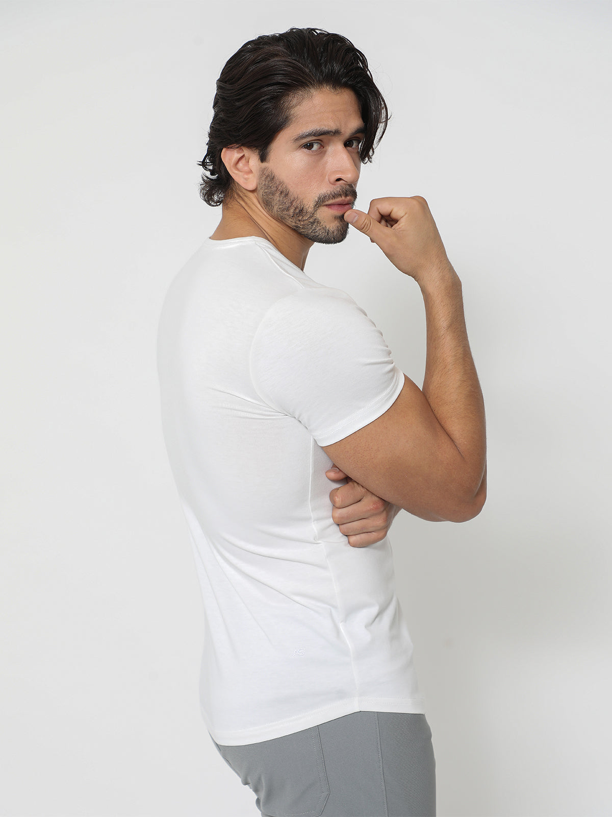 Muscle Fit V-Neck Long Sleeve Cotton Rib Knit Tech T-Shirt