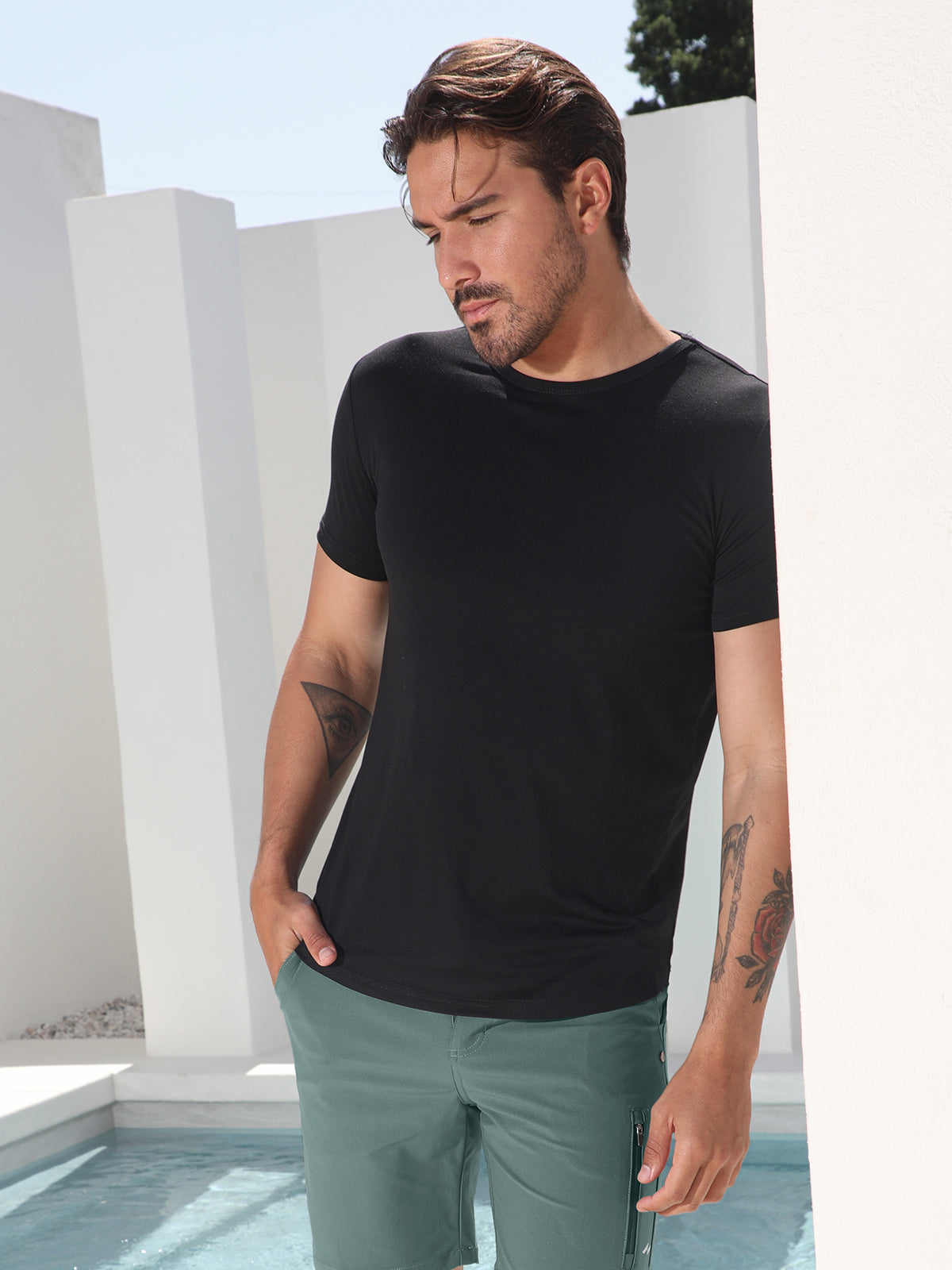 The Curve-Hem Tee from delivers on contemporary style and signature fit. Masterfully crafted from lightweight fabric engineered for all-day wear, its contouring details and curved hemline ensure flawless comfort and movement. Transitioning seamlessly from desk to drinks, this top pairs perfectly with all bottoms. Sleek and breathable, it enhances any look with refined versatility. An MVP layer for busy schedules andseasons alike, the Curve-Hem Tee will soon become your go-to top.