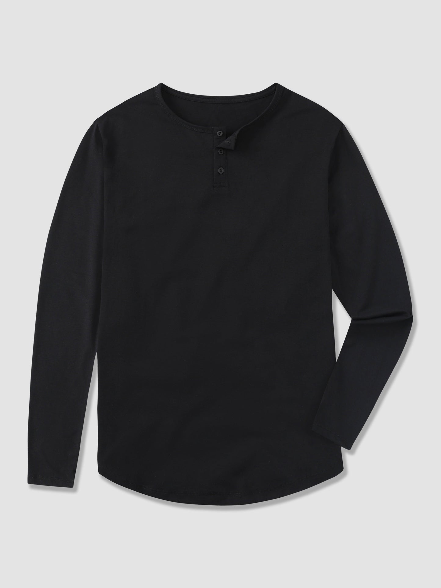 Rib Knit Curved Hem Long Sleeve Henley Shirt