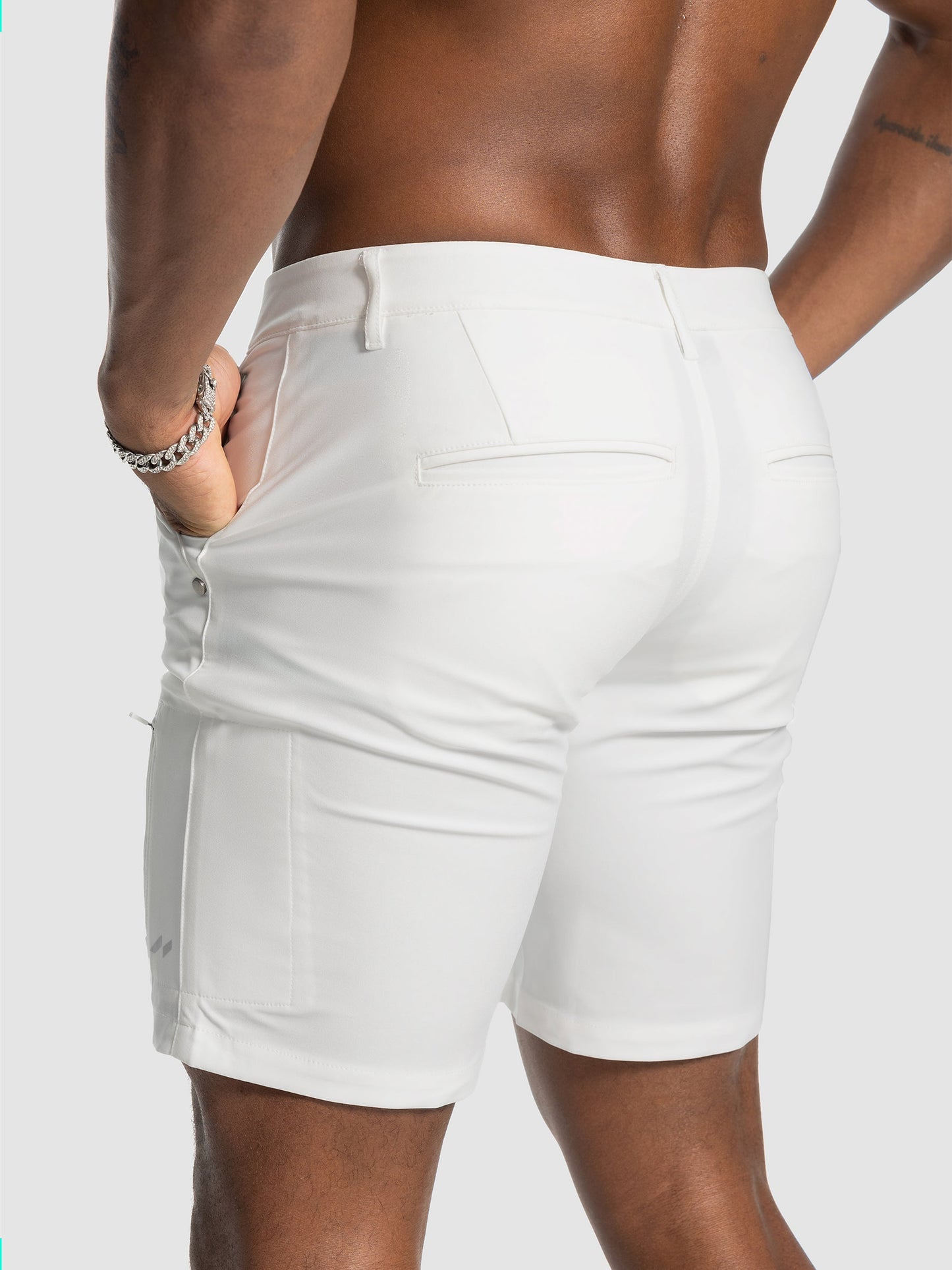 Slip into the perfect blend of relaxed comfort and refined style with our Chino Shorts. Crafted with true muscle fit, these shorts eliminate the need to size up for your thighs, delivering a tailored look that flatters your frame. Reinforced seams add a touch of resilience to this versatile wardrobe staple, ensuring it can keep up with your active lifestyle.