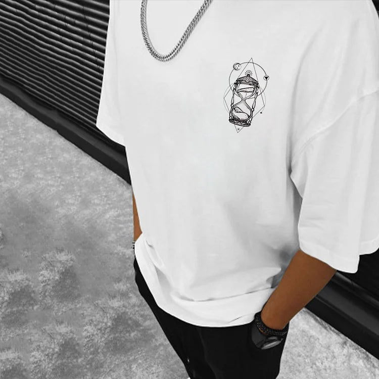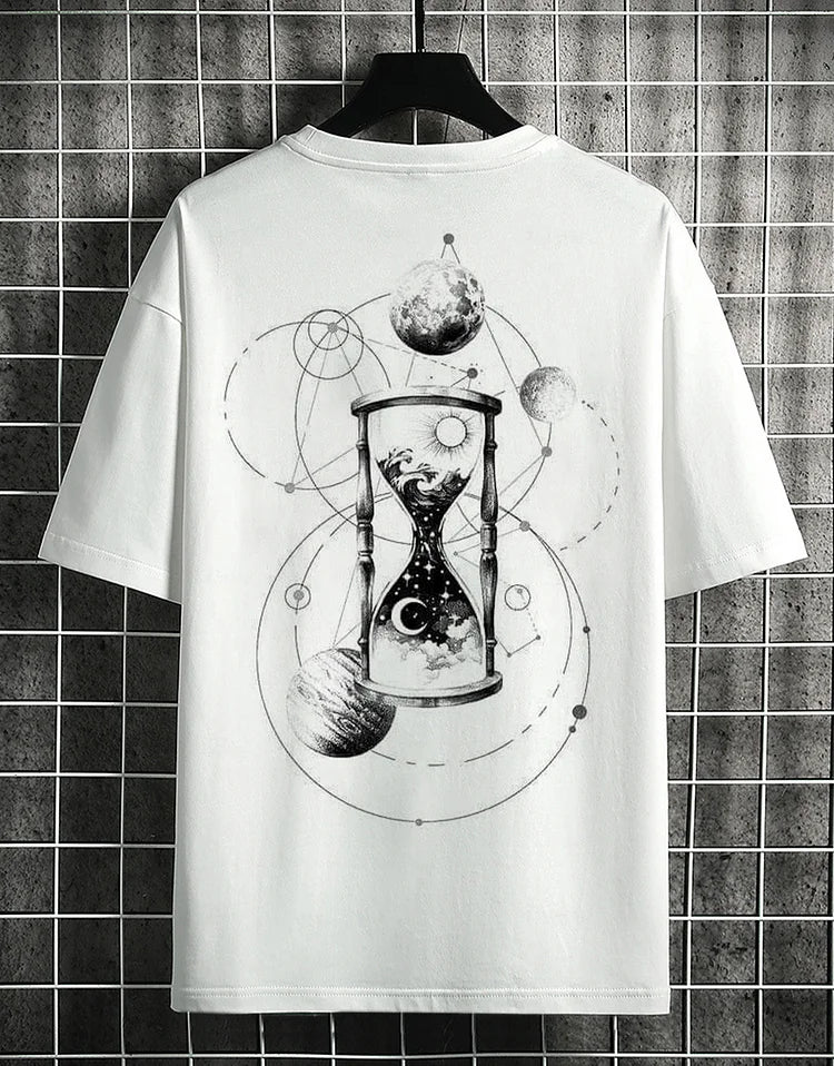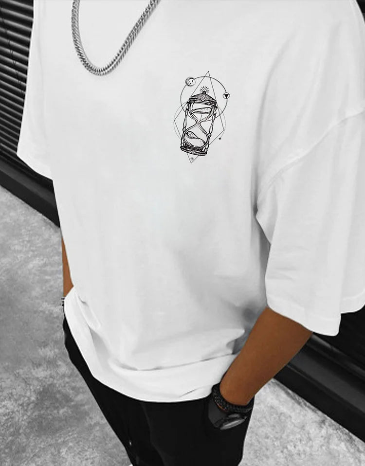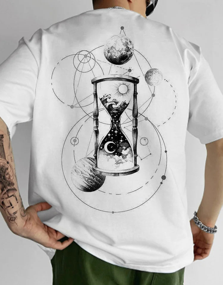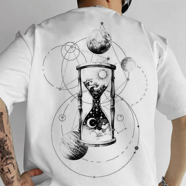 Art Element Illustration Stars Hourglass Moon Print T-Shirt