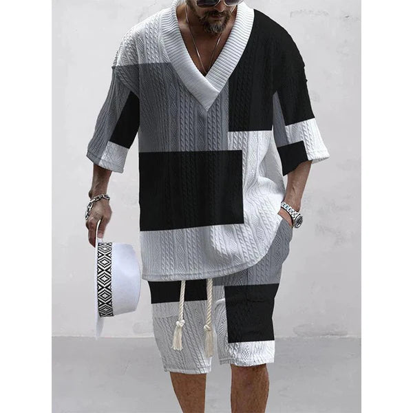 Two Tone Ethnic Polo Shirt And Shorts Co-Ord