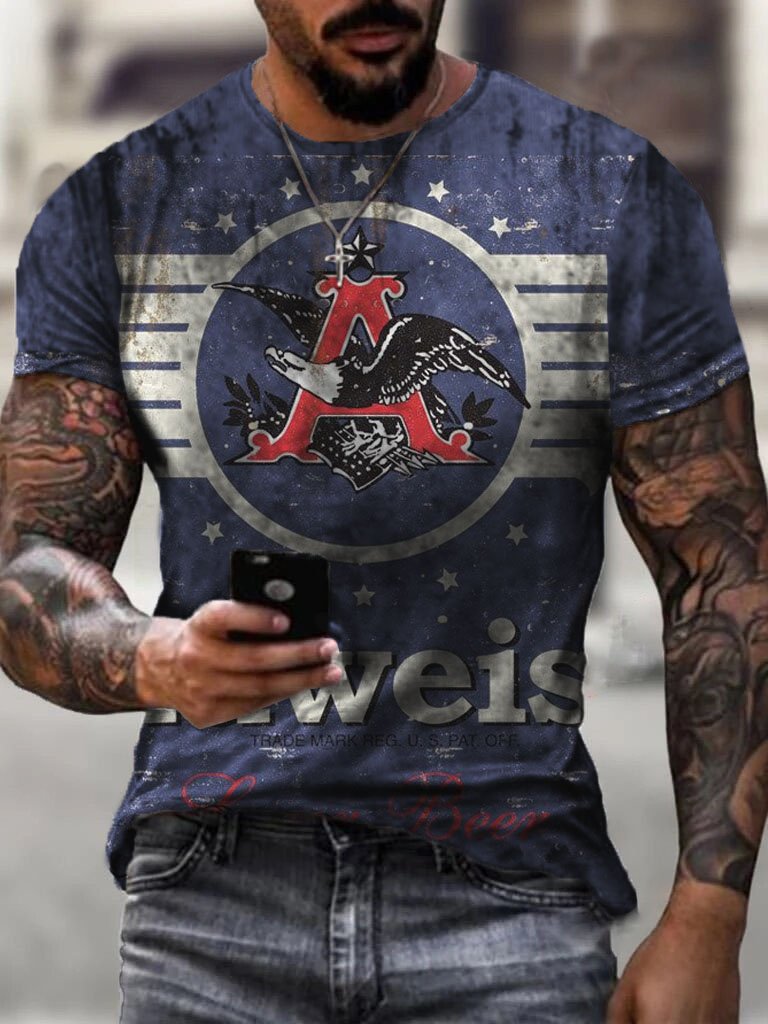 Mens Fashion Vintage Motor Oil Printed T-Shirt