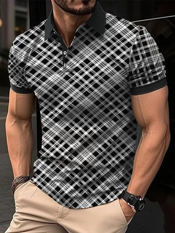 Casual Houndstooth Color Block Short Sleeve POLO Shirt