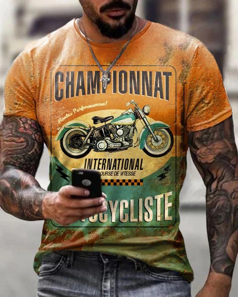 Fashion Motorcycle Print Casual T-Shirt