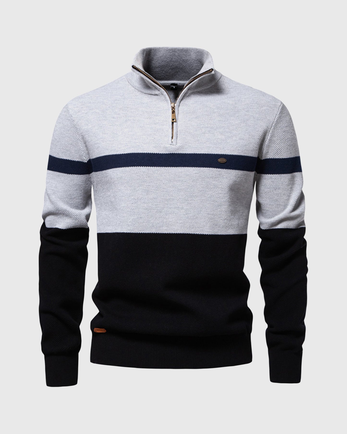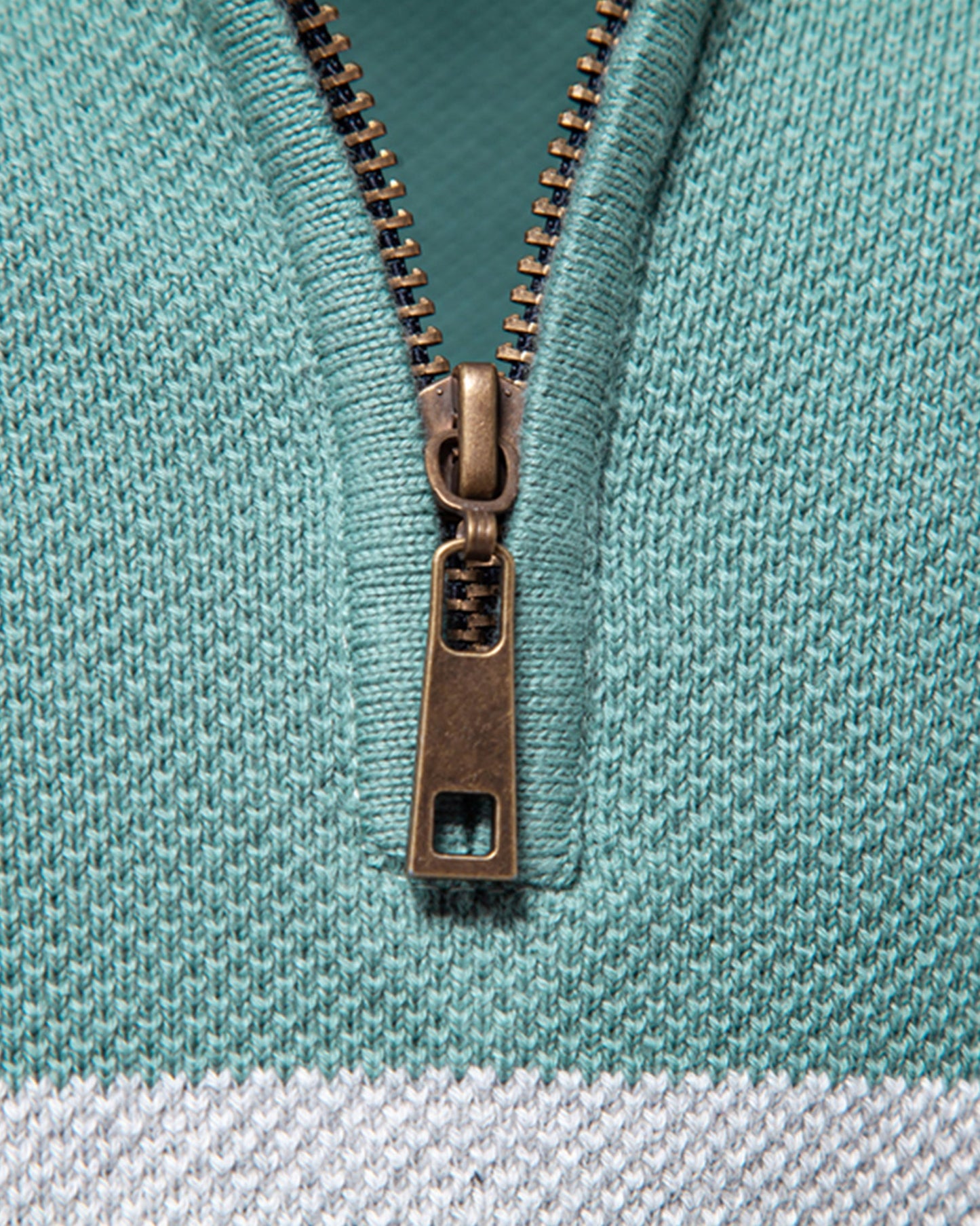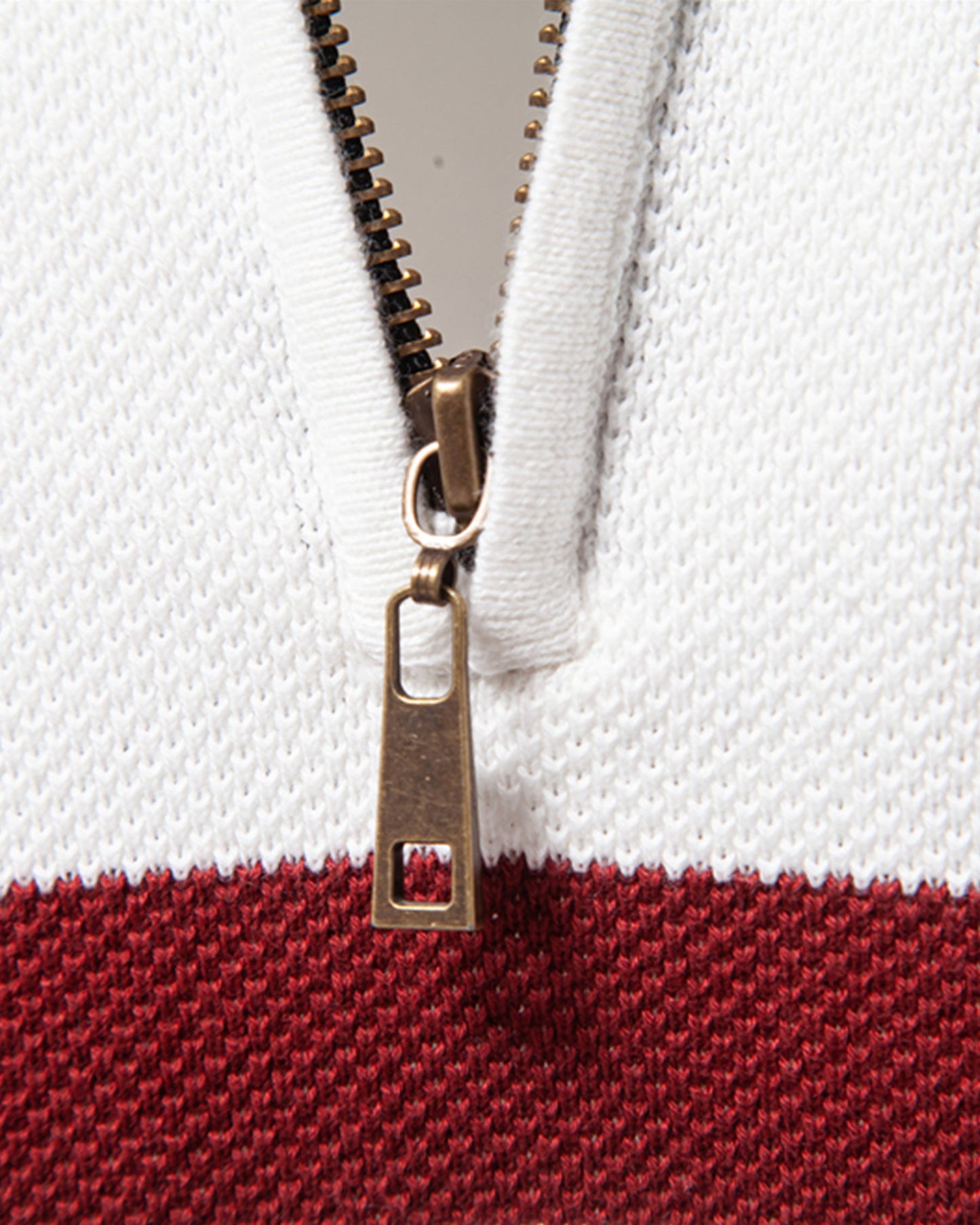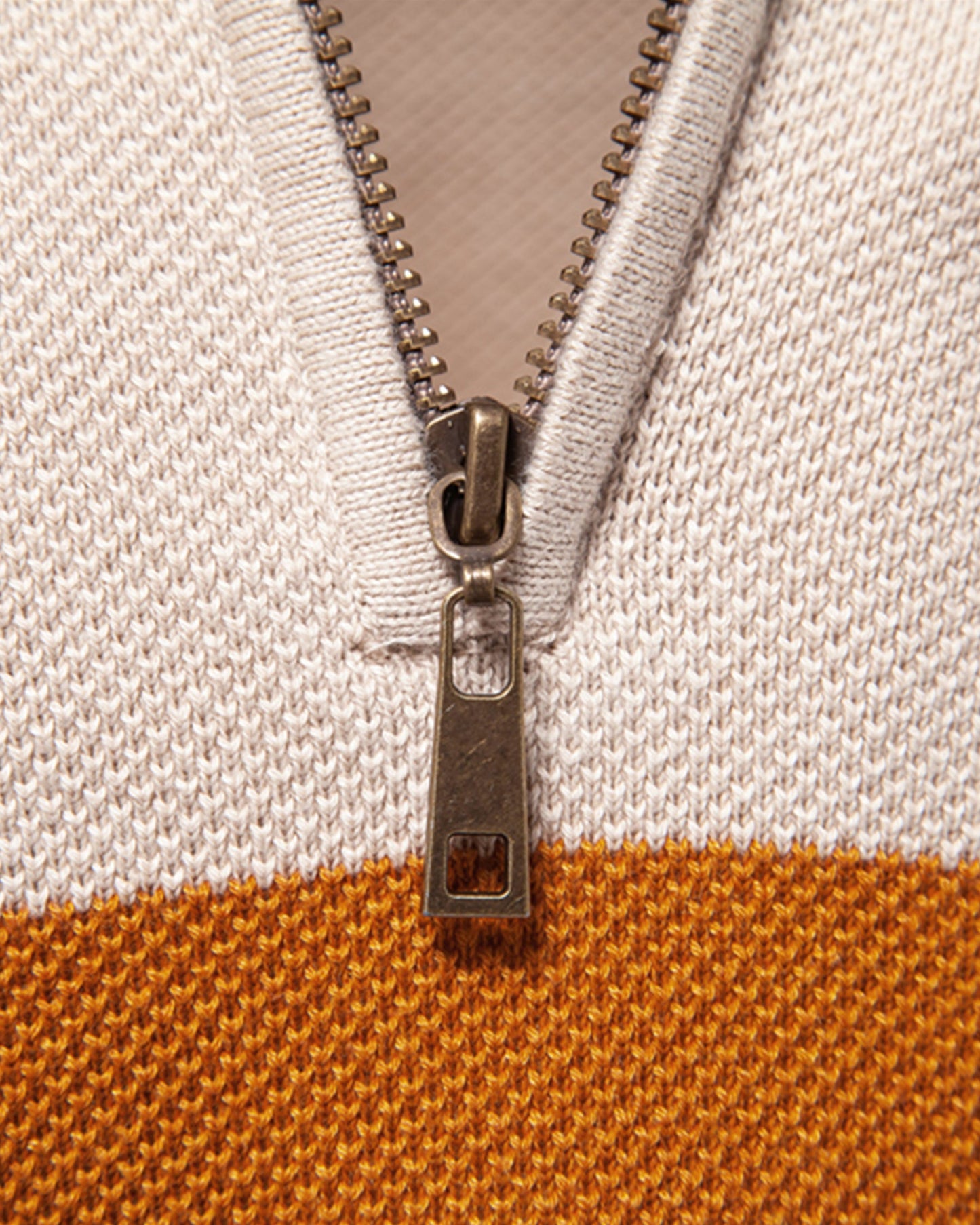 Elevate your casual wardrobe with our stylish Color-Block Zip-Up Sweater. Designed for comfort and versatility, combines style and comfort effortlessly! This sweater features a modern color-block pattern, making it perfect for layering during cooler months.