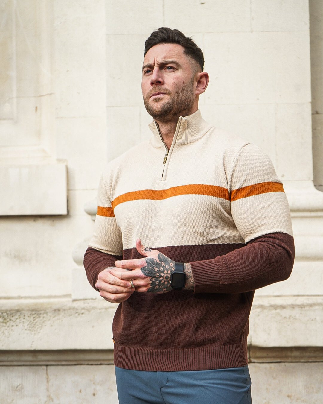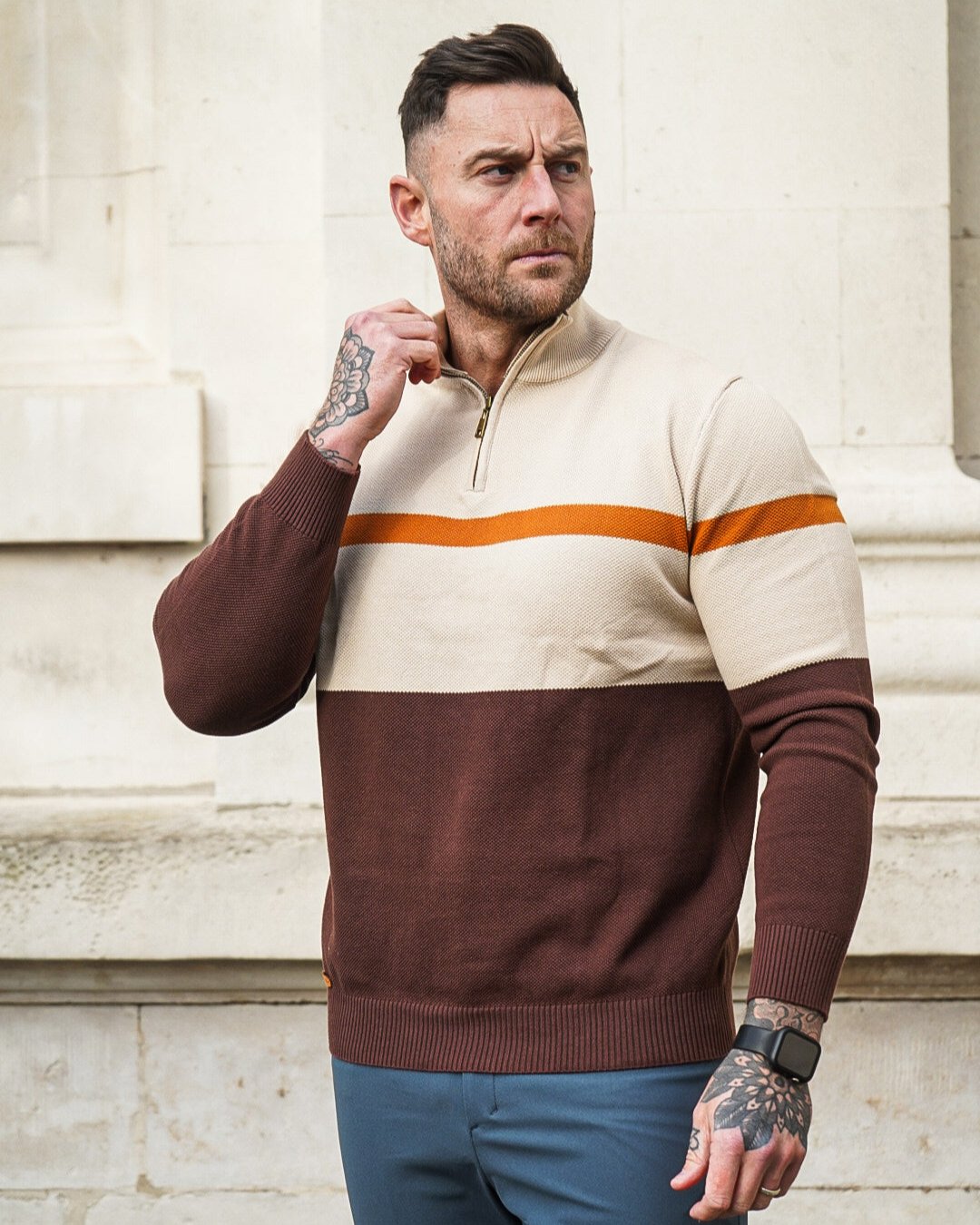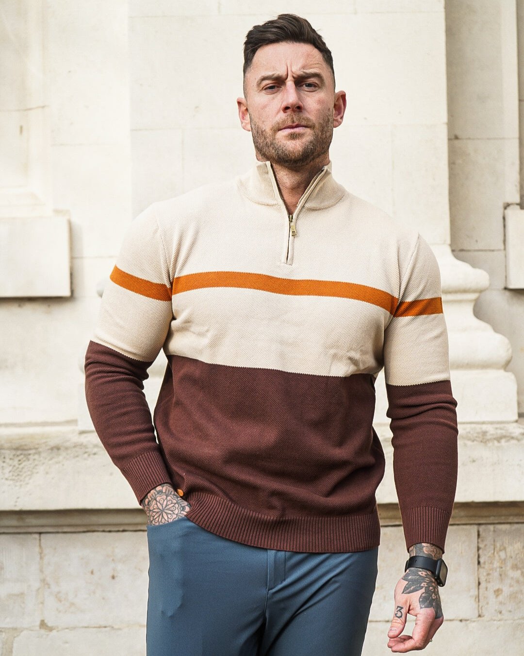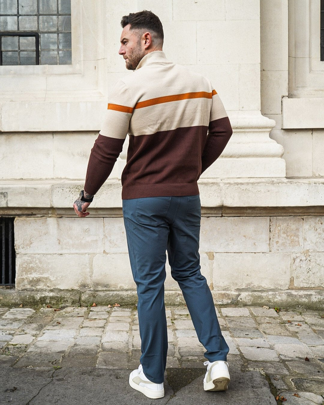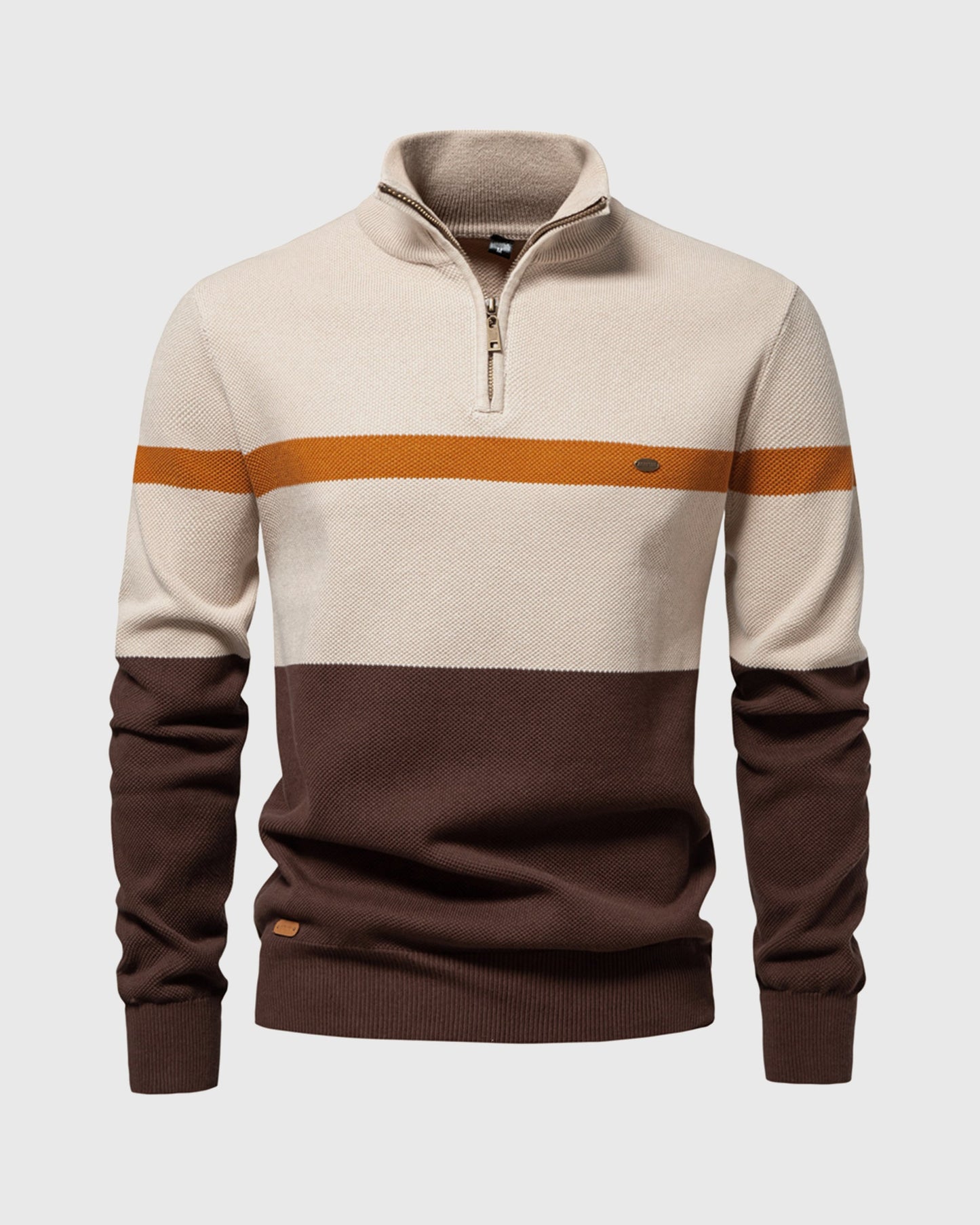 Elevate your casual wardrobe with our stylish Color-Block Zip-Up Sweater. Designed for comfort and versatility, combines style and comfort effortlessly! This sweater features a modern color-block pattern, making it perfect for layering during cooler months.