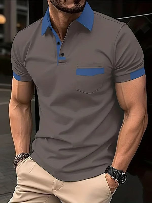 Casual Color Block Pocket Short Sleeve Polo Shirt