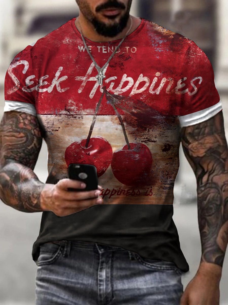 Crew Neck Cherries Color Block Short Sleeve Tops T-Shirts
