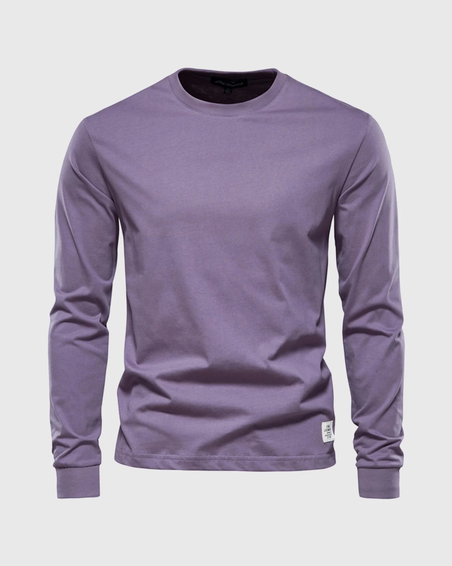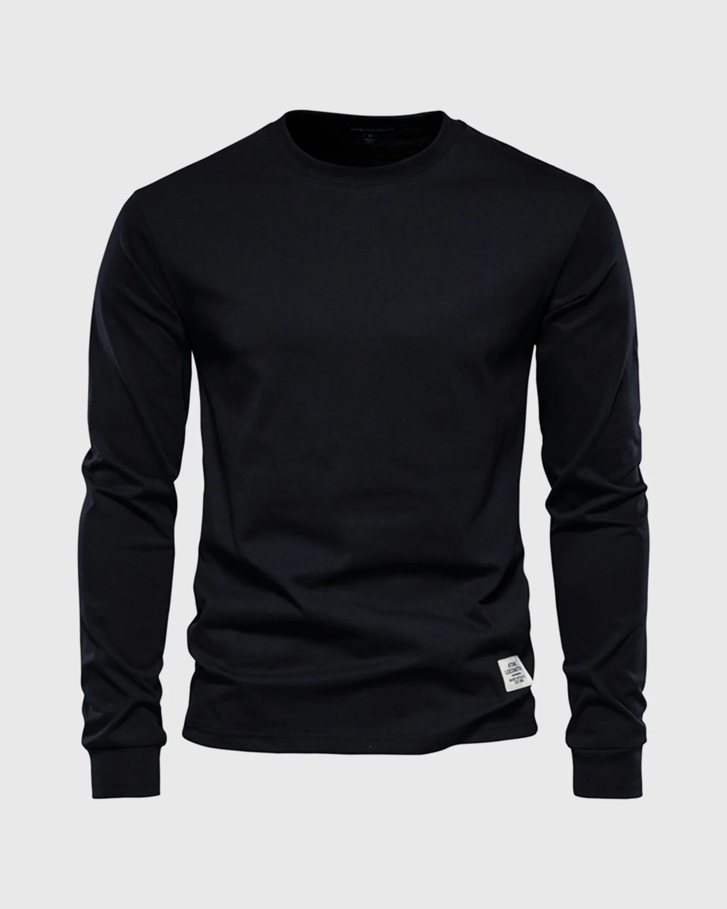This is a Crew Neck long-sleeve T-shirt made of 100% cotton. Withstand daily wear and washing, can maintain long-term use. No pilling and no wrinkle.