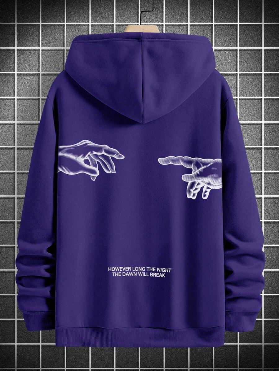 EMRG Slogan & Hand Graphic Drop Shoulder Drawstring Hoodie