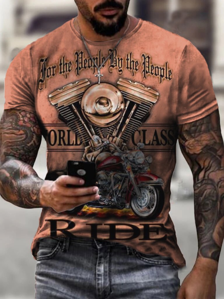 Mens Fashion Vintage Motor Oil Printed T-Shirt