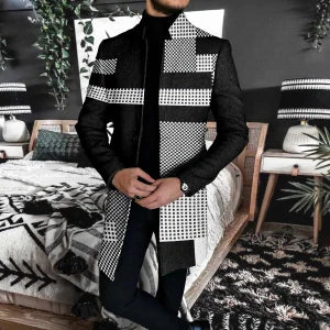 Fashion Stitching Contrast Color Black Mid Length Coat