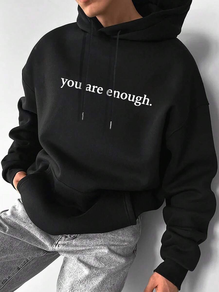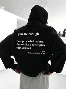 Hypemode Slogan Graphic Drop Shoulder Drawstring Hoodie
