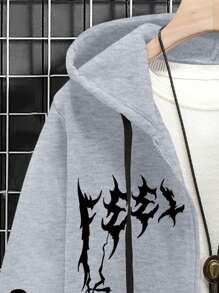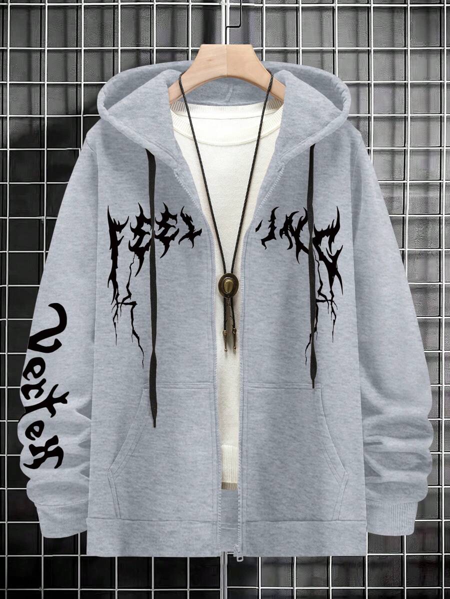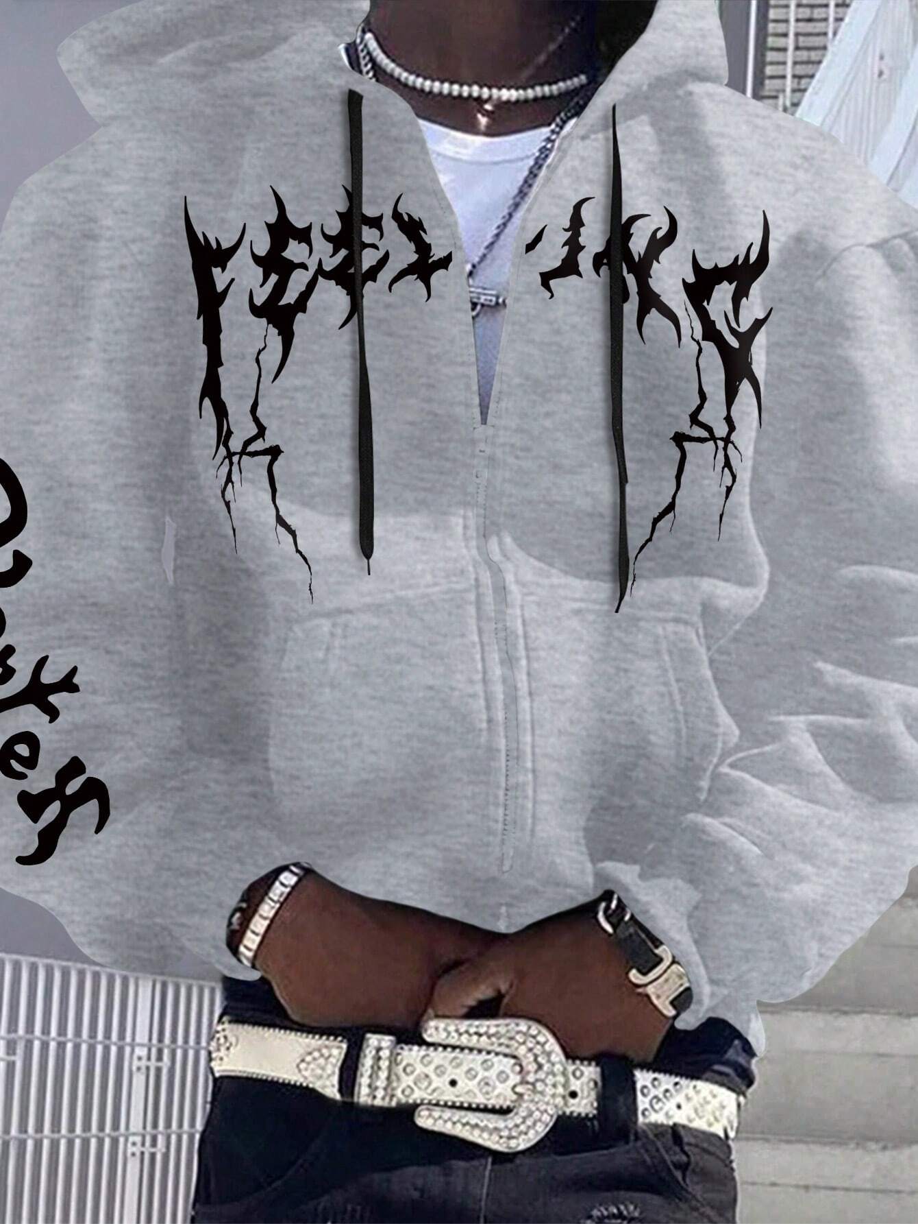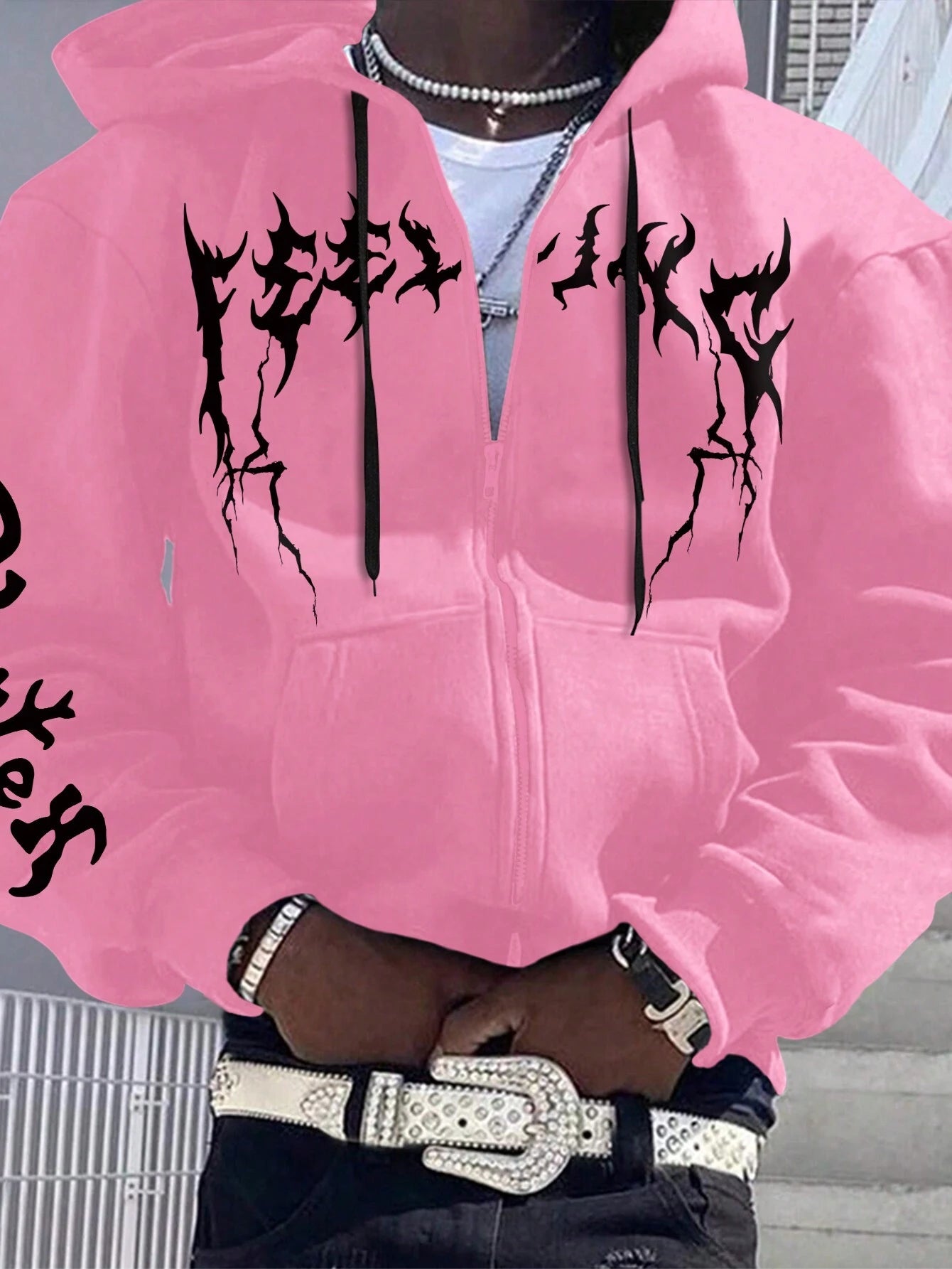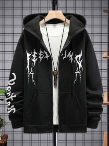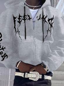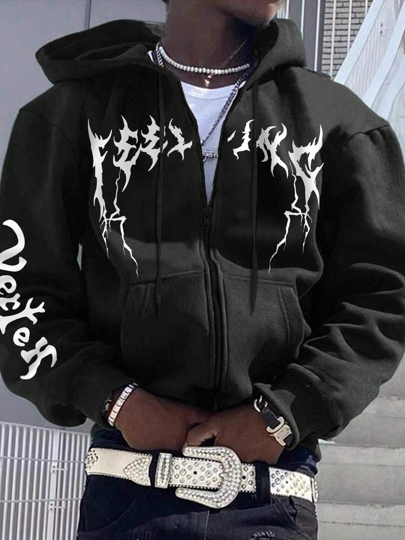 LEGND Letter Graphic Zip Up Drawstring Hoodie