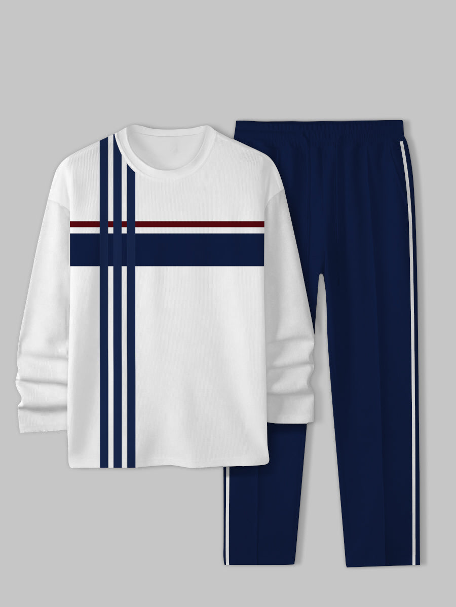 DUVAL. NORTH AMERICA Long Sleeve Casual Two-piece Set perfectly epitomizes fashion and comfort in one. Comfortable enough for everyday wear in most seasons, the 100% polyester cotton material is lightweight and soft on the skin. Accented with contrasting color details, this set exudes playfulness with its geometrical print to add trendiness to your everyday wear. Due to its regular length and long sleeves, this ensures a classic and versatile fitting.