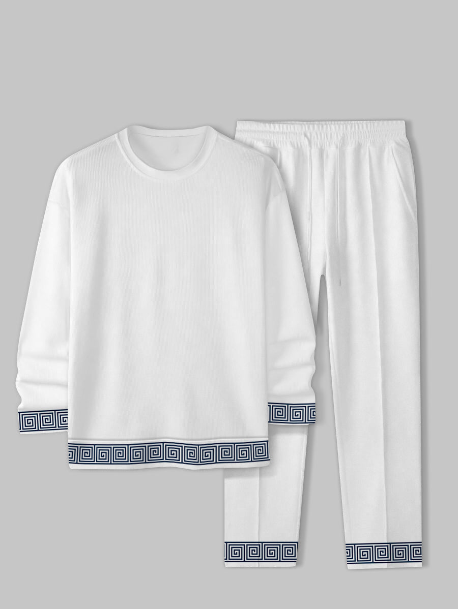 DUVAL. NORTH AMERICA Long Sleeve Casual Two-piece Set perfectly epitomizes fashion and comfort in one. Comfortable enough for everyday wear in most seasons, the 100% polyester cotton material is lightweight and soft on the skin. Accented with contrasting color details, this set exudes playfulness with its geometrical print to add trendiness to your everyday wear. Due to its regular length and long sleeves, this ensures a classic and versatile fitting.