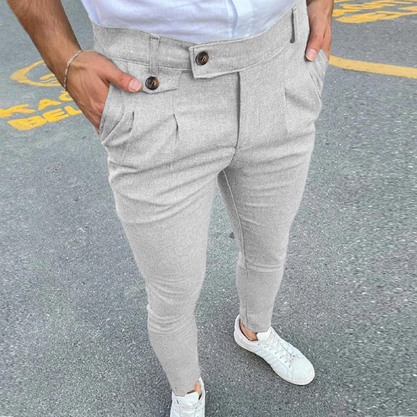 Men Casual Business Solid Color Suit Pants