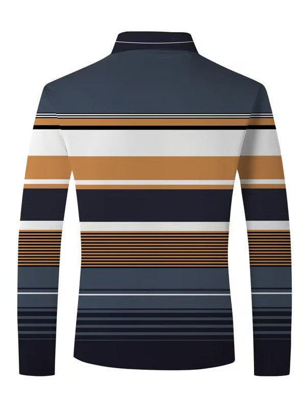 Business Casual Striped Button-Down Polo
