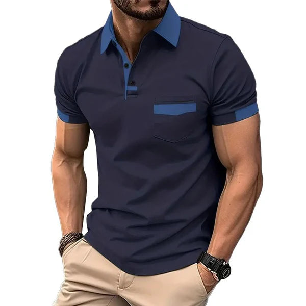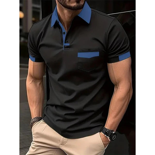 Casual Color Block Pocket Short Sleeve Polo Shirt