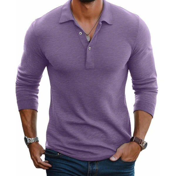 Casual Solid Color Lapel Pullover Slim Fit Long Sleeve Polo Shirt