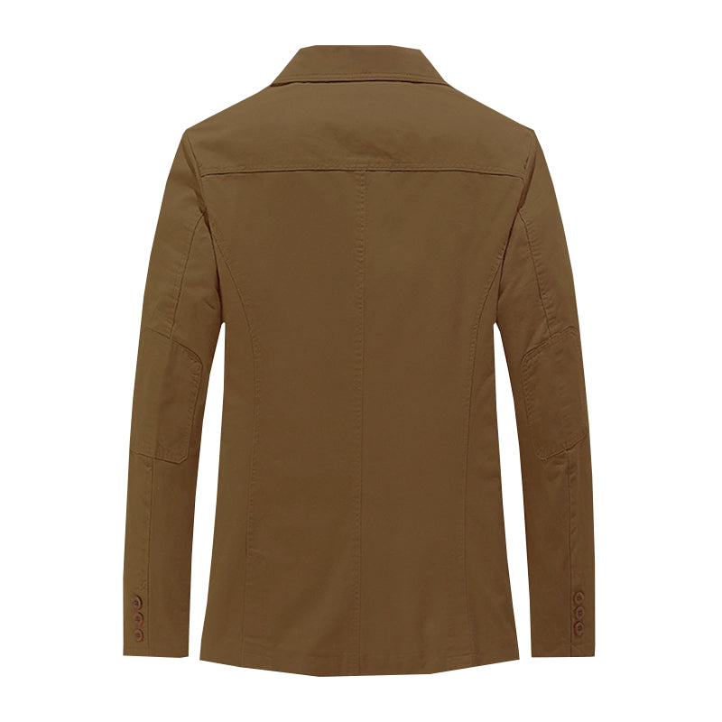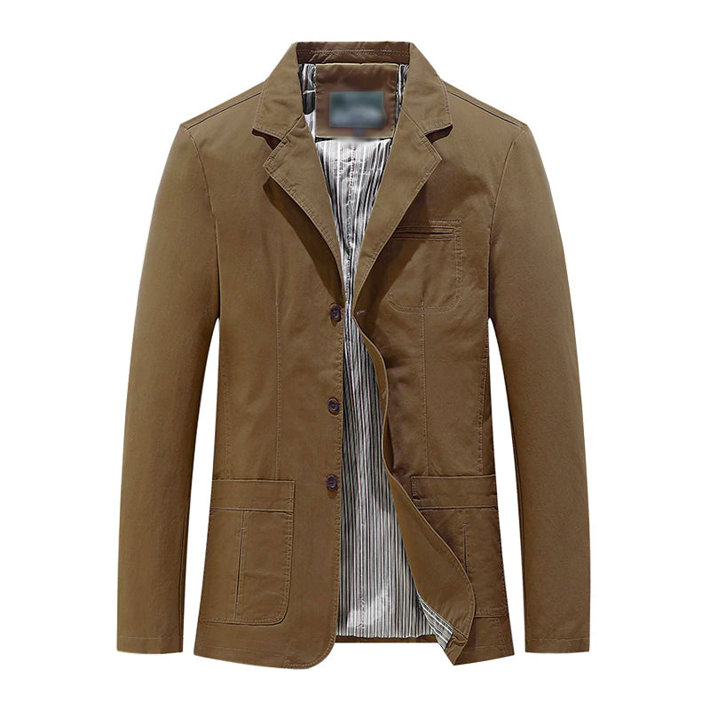 - Design: Three-button placket, resin buttons, one chest welt pocket and two front waist patch pocket, long sleeve, fully lined