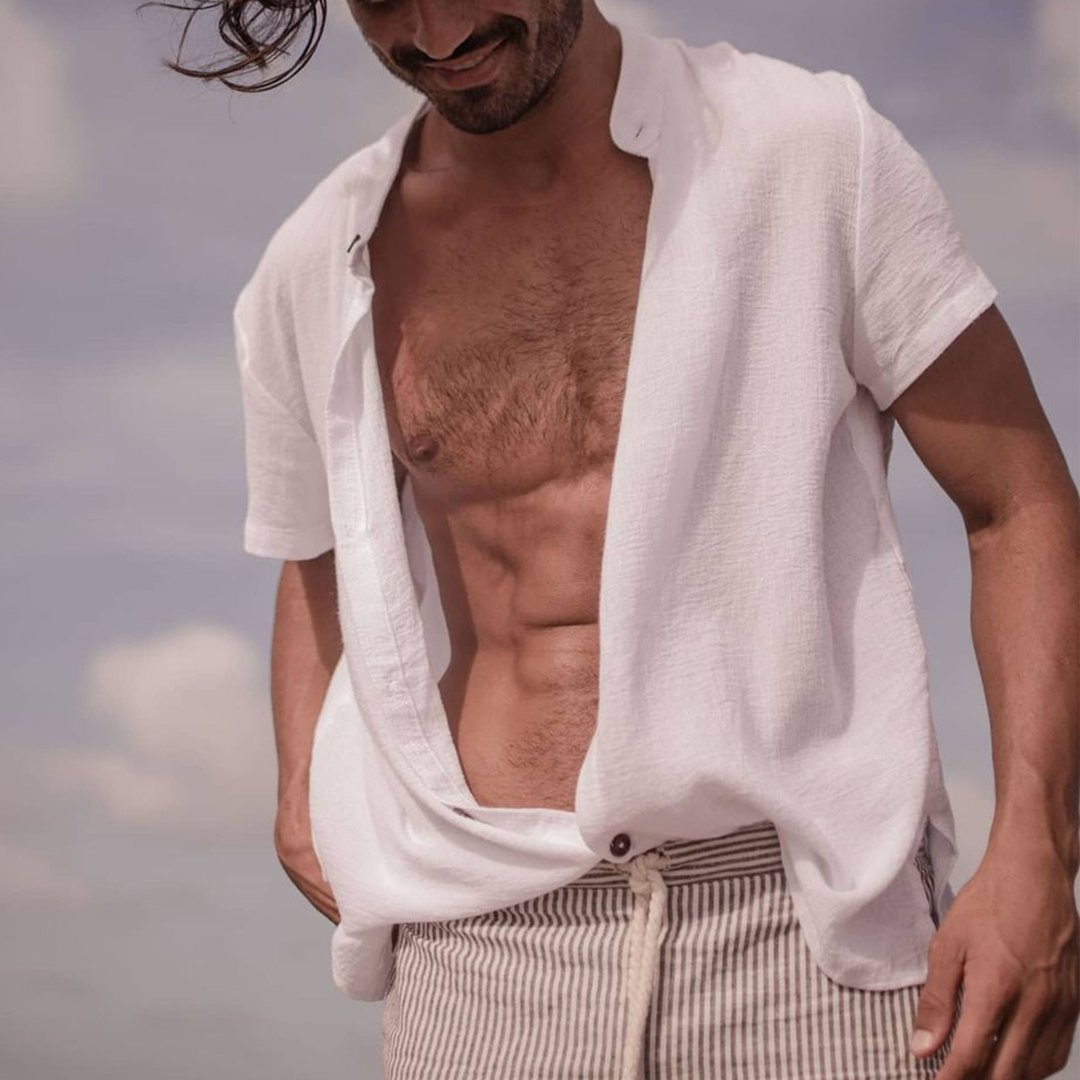 Casual Retro Simple Vacation Loose Cotton Linen Short Sleeve Shirt