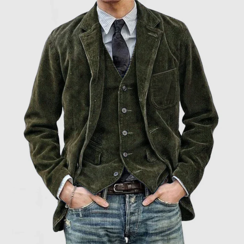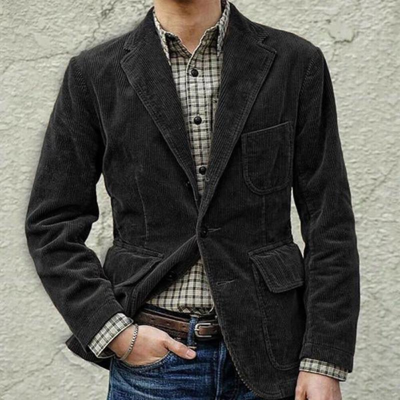 The blazer is made of soft corduroy fabric. Corduroy is a durable ridged fabric. This fabric is most known for its unique ridged pattern, thick in texture, soft in touch, and comfortable in appearance and wear. When it is weaved in a variety of widths by corduroy producers, then it is made into blazers. Fabric historians believe that corduroy originated in approximately 200 AD from an Egyptian fabric called fustian. Now corduroy fabric has regained popularity.
