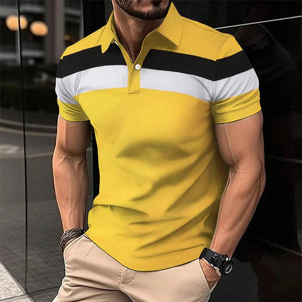 Casual Striped Color Block Lapel Polo Shirt