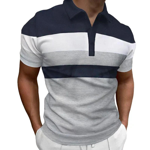 Casual Striped Color Block Lapel Polo Shirt