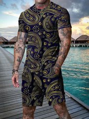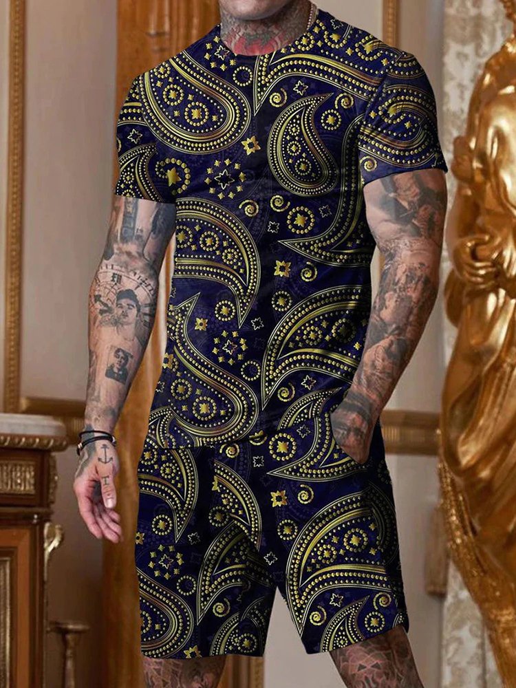 Chic Casual Black Cashew Floral Print Round Collar Suit