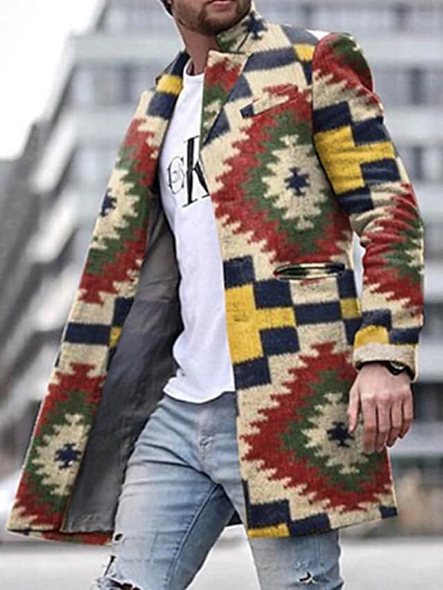 Coat with Pockets Geometry Front Pocket Button-Down Print