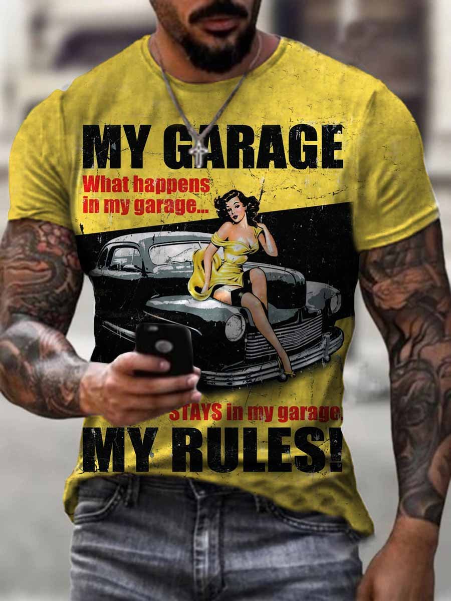 Mens Fashion Vintage Motor Oil Printed T-Shirt