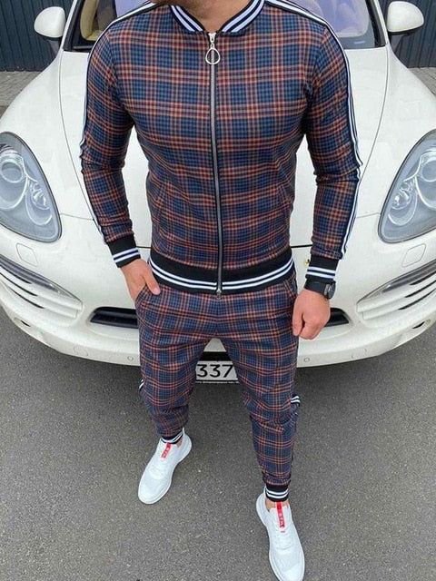 Fashion Casual Plaid Printed Sports Two-Piece Set