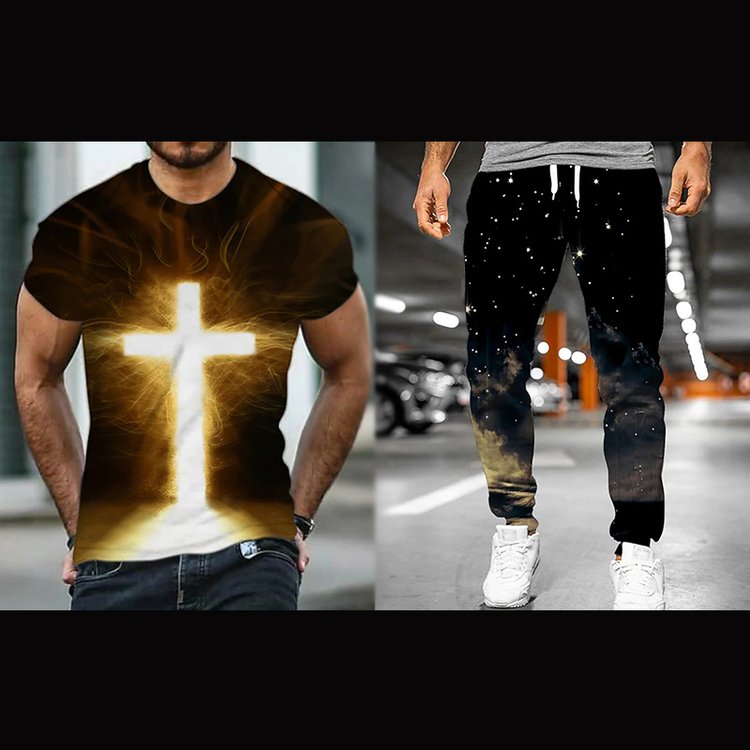 Fashion Casual Yellow Cross Print Short Sleeve Suit