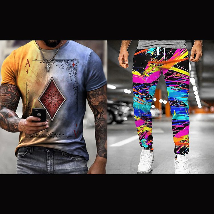 Fashion Casual Yellow Poker Print Short Sleeve Suit