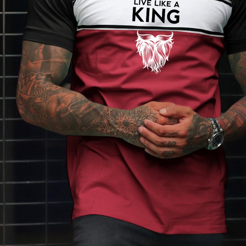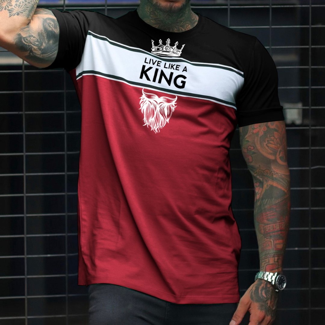 Fashion Live Like A King Print Color Matching Casual Slim Fit Short Sleeve T-Shirt