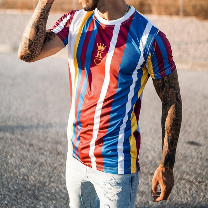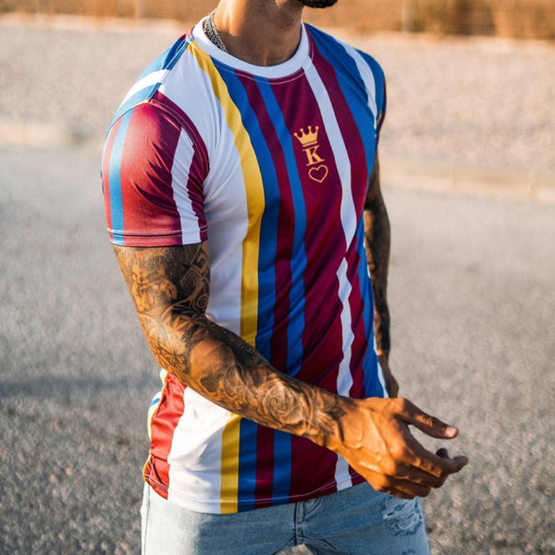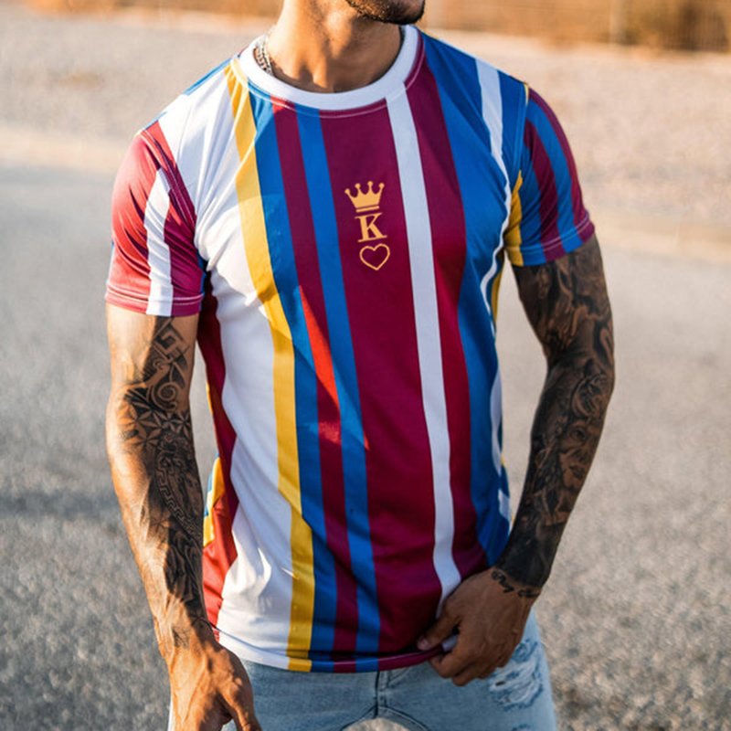 Fashion Peach Heart KING Stripe Print Casual Short Sleeve T-Shirt