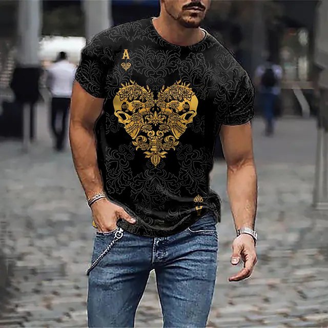 Fashionable Casual Poker Print T-Shirt